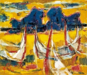 本場拍賣最受矚目的焦點之一,為中國當代藝術巨擘周春芽的代表作《十八學士》。該作品筆觸奔放、色彩鮮明,以其標誌性的「桃花」系列,展現東方筆意與西方繪畫語彙融合的成熟表現。另一亮點為旅法藝術大師朱德群的《風景》與《海景》兩作,流動的生命力與和諧的色彩布局,作為其早期的重要作品,勢必吸引國際藏家的關注與競標。