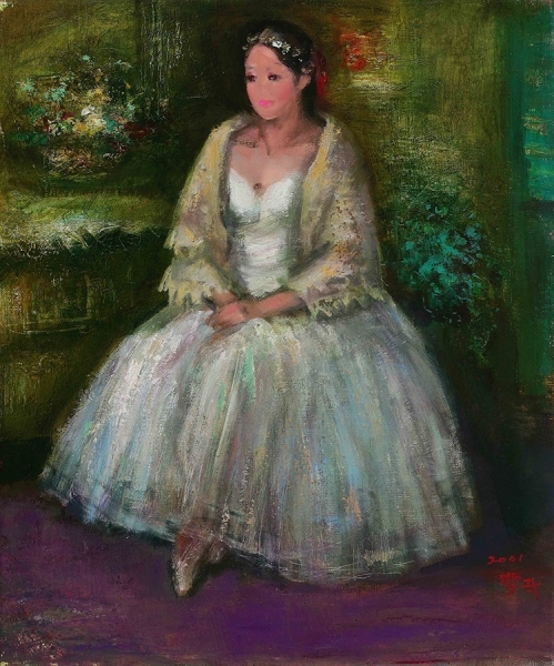 油彩 畫布 2001 簽名右下:2001 哲哉 46×40cm (18.1×45.7 in.) 出版: 《印象經典VI,新世紀的期約,四大名家特展-沈哲哉、陳銀輝、陳景容、 王守英》,印象畫廊,台北,2001,頁15。