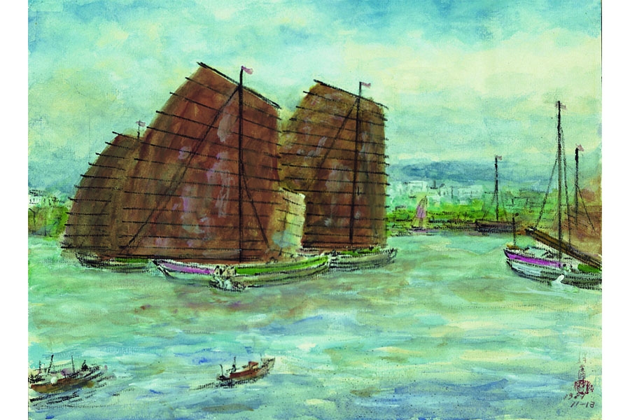 油彩畫布1985 簽名右下:哲哉1985 畫背簽名:「巴黎所見」沈哲哉一九八五 50x60.5cm(19.6x24in.) Oil on canvas 1985 Signed lower right: Zhe Zai in Chinese, dated 1985 Signed on reverse: 「The View of Paris」by Shen Zhe Zai in Chinese, dated 1985.